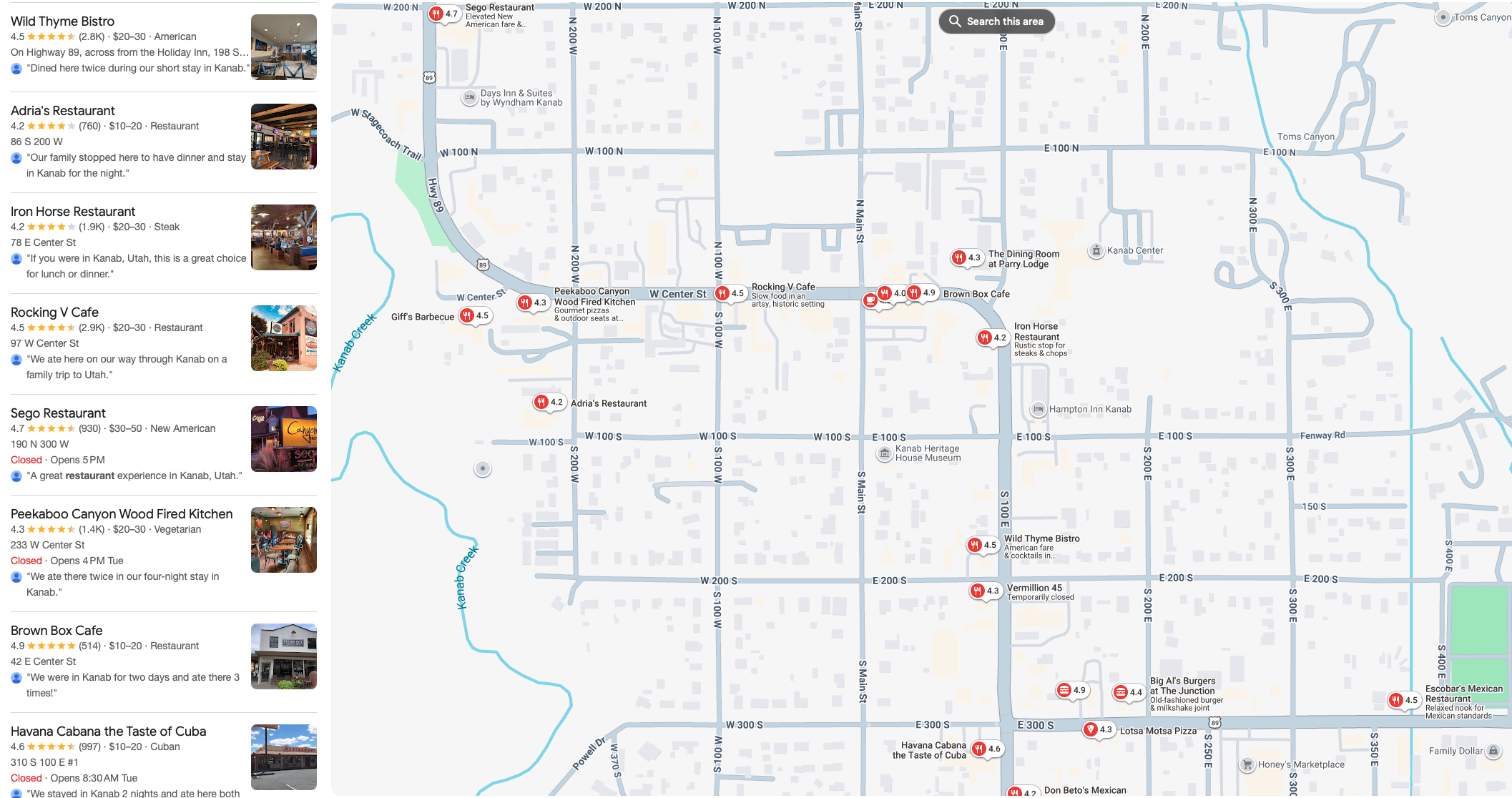 Places to Eat in Kanab